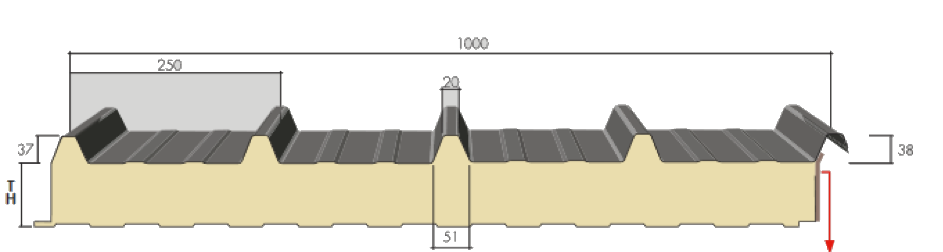 Чем толще внутреннее ядро, тем лучше будет изоляция кровельной панели, но это также зависит от материала сердечника, PUR, PIR или MIWO. На рынке есть несколько кровельных панелей с одним, двумя, тремя, четырьмя, пятью и шестью ребрами.